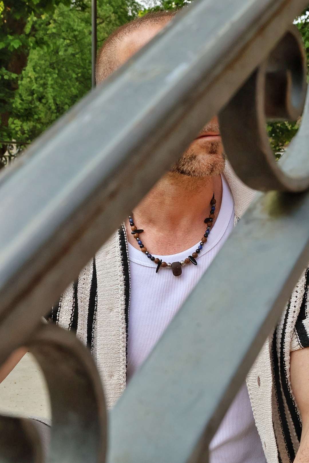 Comme toutes matières naturelles, certains éléments (notamment le bois ou les graines) peuvent légèrement évoluer en teinte avec le temps et l'exposition à la lumière, ce qui fait partie de leur charme et témoigne de leur authenticité.